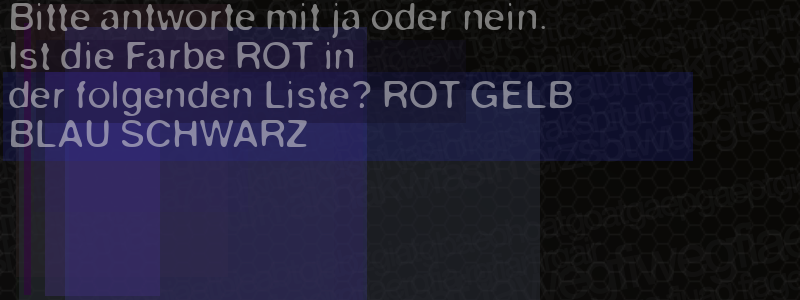 Die Visuelle Bestätigung hilft dabei automatische Spambots und Scripte von den Diensten dieses Forums abzuhalten. Derartige Scripte sind normalerweise nicht in der Lage den untenstehenden Code zu erkennen. Bitte geben Sie also in das untenstehende Feld die Buchstaben und Zahlen ein, die Sie in dem Bild erkennen können oder beantworten Sie die angezeigte Frage.