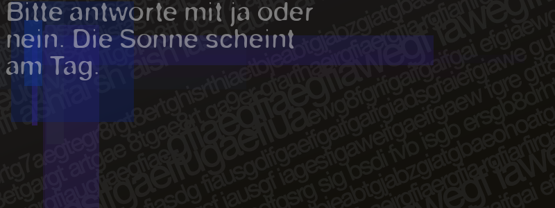 Die Visuelle Bestätigung hilft dabei automatische Spambots und Scripte von den Diensten dieses Forums abzuhalten. Derartige Scripte sind normalerweise nicht in der Lage den untenstehenden Code zu erkennen. Bitte geben Sie also in das untenstehende Feld die Buchstaben und Zahlen ein, die Sie in dem Bild erkennen können oder beantworten Sie die angezeigte Frage.