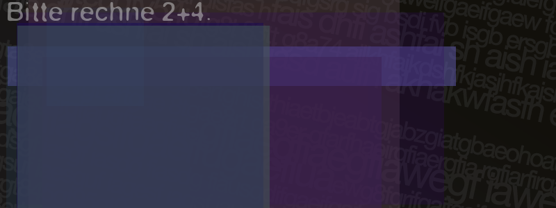 Die Visuelle Bestätigung hilft dabei automatische Spambots und Scripte von den Diensten dieses Forums abzuhalten. Derartige Scripte sind normalerweise nicht in der Lage den untenstehenden Code zu erkennen. Bitte geben Sie also in das untenstehende Feld die Buchstaben und Zahlen ein, die Sie in dem Bild erkennen können oder beantworten Sie die angezeigte Frage.