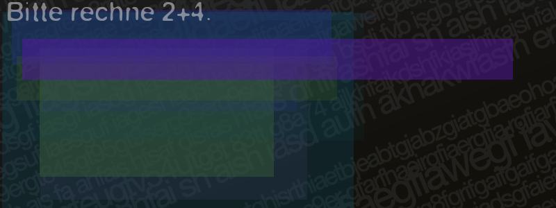 Die Visuelle Bestätigung hilft dabei automatische Spambots und Scripte von den Diensten dieses Forums abzuhalten. Derartige Scripte sind normalerweise nicht in der Lage den untenstehenden Code zu erkennen. Bitte geben Sie also in das untenstehende Feld die Buchstaben und Zahlen ein, die Sie in dem Bild erkennen können oder beantworten Sie die angezeigte Frage.