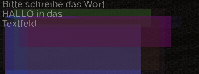 Die Visuelle Bestätigung hilft dabei automatische Spambots und Scripte von den Diensten dieses Forums abzuhalten. Derartige Scripte sind normalerweise nicht in der Lage den untenstehenden Code zu erkennen. Bitte geben Sie also in das untenstehende Feld die Buchstaben und Zahlen ein, die Sie in dem Bild erkennen können oder beantworten Sie die angezeigte Frage.