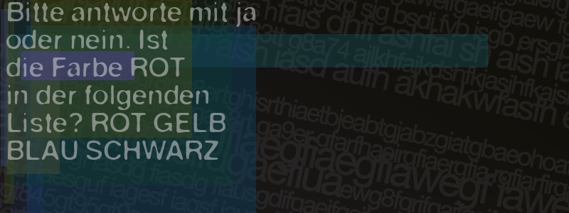 Die Visuelle Bestätigung hilft dabei automatische Spambots und Scripte von den Diensten dieses Forums abzuhalten. Derartige Scripte sind normalerweise nicht in der Lage den untenstehenden Code zu erkennen. Bitte geben Sie also in das untenstehende Feld die Buchstaben und Zahlen ein, die Sie in dem Bild erkennen können oder beantworten Sie die angezeigte Frage.