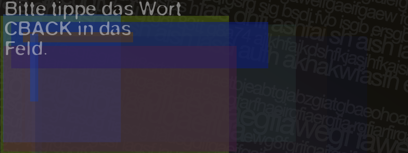 Die Visuelle Bestätigung hilft dabei automatische Spambots und Scripte von den Diensten dieses Forums abzuhalten. Derartige Scripte sind normalerweise nicht in der Lage den untenstehenden Code zu erkennen. Bitte geben Sie also in das untenstehende Feld die Buchstaben und Zahlen ein, die Sie in dem Bild erkennen können oder beantworten Sie die angezeigte Frage.