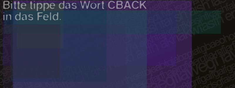 Die Visuelle Bestätigung hilft dabei automatische Spambots und Scripte von den Diensten dieses Forums abzuhalten. Derartige Scripte sind normalerweise nicht in der Lage den untenstehenden Code zu erkennen. Bitte geben Sie also in das untenstehende Feld die Buchstaben und Zahlen ein, die Sie in dem Bild erkennen können oder beantworten Sie die angezeigte Frage.