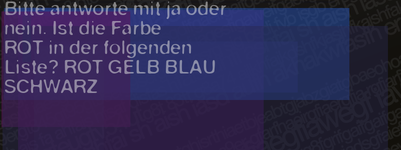 Die Visuelle Bestätigung hilft dabei automatische Spambots und Scripte von den Diensten dieses Forums abzuhalten. Derartige Scripte sind normalerweise nicht in der Lage den untenstehenden Code zu erkennen. Bitte geben Sie also in das untenstehende Feld die Buchstaben und Zahlen ein, die Sie in dem Bild erkennen können oder beantworten Sie die angezeigte Frage.