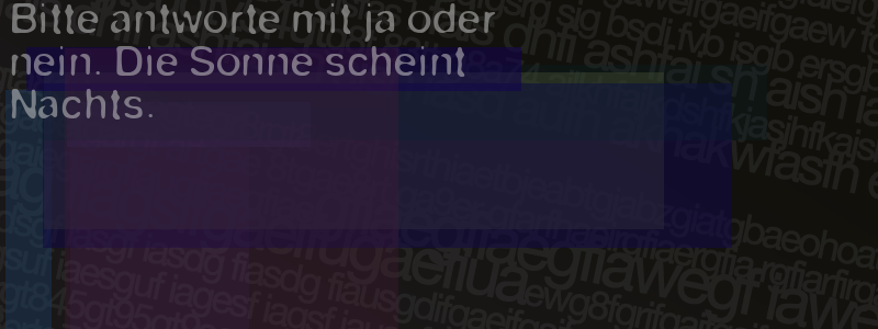 Die Visuelle Bestätigung hilft dabei automatische Spambots und Scripte von den Diensten dieses Forums abzuhalten. Derartige Scripte sind normalerweise nicht in der Lage den untenstehenden Code zu erkennen. Bitte geben Sie also in das untenstehende Feld die Buchstaben und Zahlen ein, die Sie in dem Bild erkennen können oder beantworten Sie die angezeigte Frage.