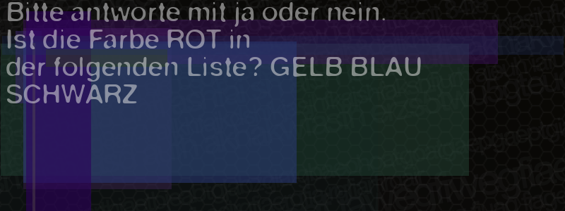 Die Visuelle Bestätigung hilft dabei automatische Spambots und Scripte von den Diensten dieses Forums abzuhalten. Derartige Scripte sind normalerweise nicht in der Lage den untenstehenden Code zu erkennen. Bitte geben Sie also in das untenstehende Feld die Buchstaben und Zahlen ein, die Sie in dem Bild erkennen können oder beantworten Sie die angezeigte Frage.