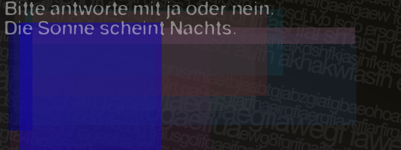 Die Visuelle Bestätigung hilft dabei automatische Spambots und Scripte von den Diensten dieses Forums abzuhalten. Derartige Scripte sind normalerweise nicht in der Lage den untenstehenden Code zu erkennen. Bitte geben Sie also in das untenstehende Feld die Buchstaben und Zahlen ein, die Sie in dem Bild erkennen können oder beantworten Sie die angezeigte Frage.