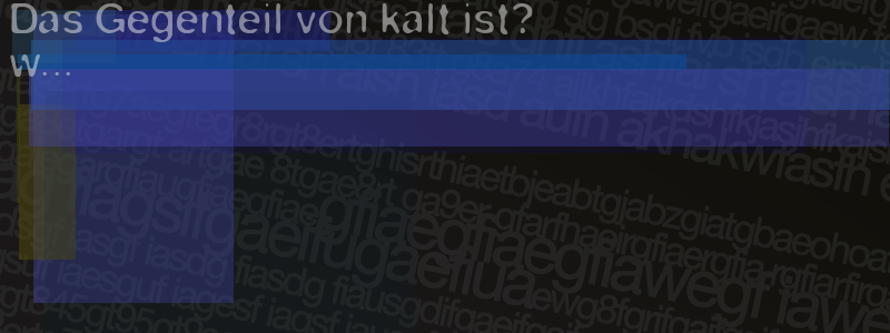 Die Visuelle Bestätigung hilft dabei automatische Spambots und Scripte von den Diensten dieses Forums abzuhalten. Derartige Scripte sind normalerweise nicht in der Lage den untenstehenden Code zu erkennen. Bitte geben Sie also in das untenstehende Feld die Buchstaben und Zahlen ein, die Sie in dem Bild erkennen können oder beantworten Sie die angezeigte Frage.