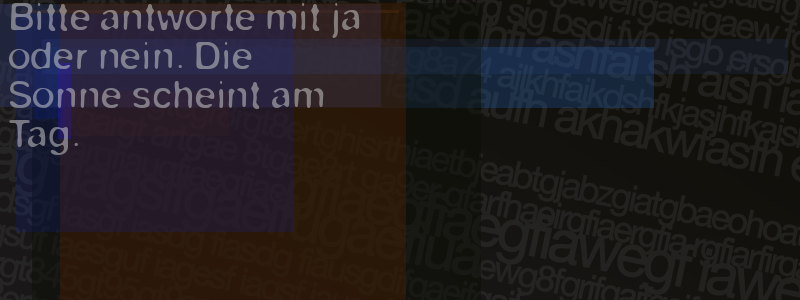 Die Visuelle Bestätigung hilft dabei automatische Spambots und Scripte von den Diensten dieses Forums abzuhalten. Derartige Scripte sind normalerweise nicht in der Lage den untenstehenden Code zu erkennen. Bitte geben Sie also in das untenstehende Feld die Buchstaben und Zahlen ein, die Sie in dem Bild erkennen können oder beantworten Sie die angezeigte Frage.