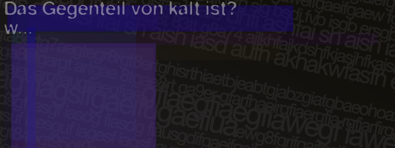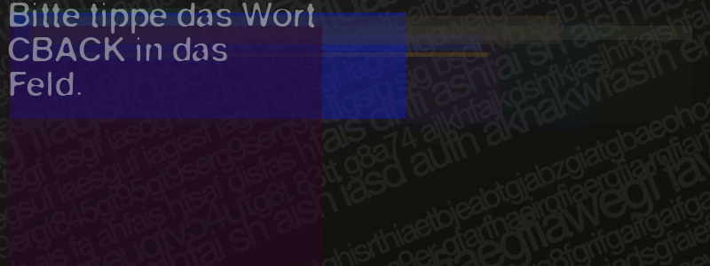 Die Visuelle Bestätigung hilft dabei automatische Spambots und Scripte von den Diensten dieses Forums abzuhalten. Derartige Scripte sind normalerweise nicht in der Lage den untenstehenden Code zu erkennen. Bitte geben Sie also in das untenstehende Feld die Buchstaben und Zahlen ein, die Sie in dem Bild erkennen können oder beantworten Sie die angezeigte Frage.