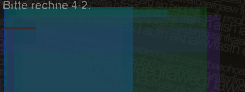 Die Visuelle Bestätigung hilft dabei automatische Spambots und Scripte von den Diensten dieses Forums abzuhalten. Derartige Scripte sind normalerweise nicht in der Lage den untenstehenden Code zu erkennen. Bitte geben Sie also in das untenstehende Feld die Buchstaben und Zahlen ein, die Sie in dem Bild erkennen können oder beantworten Sie die angezeigte Frage.