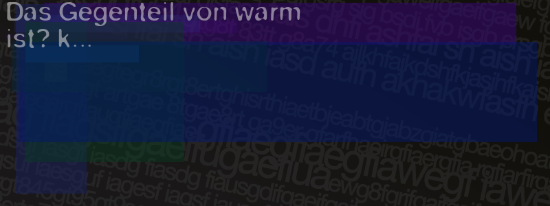 Die Visuelle Bestätigung hilft dabei automatische Spambots und Scripte von den Diensten dieses Forums abzuhalten. Derartige Scripte sind normalerweise nicht in der Lage den untenstehenden Code zu erkennen. Bitte geben Sie also in das untenstehende Feld die Buchstaben und Zahlen ein, die Sie in dem Bild erkennen können oder beantworten Sie die angezeigte Frage.