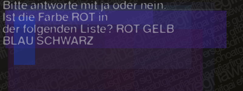 Die Visuelle Bestätigung hilft dabei automatische Spambots und Scripte von den Diensten dieses Forums abzuhalten. Derartige Scripte sind normalerweise nicht in der Lage den untenstehenden Code zu erkennen. Bitte geben Sie also in das untenstehende Feld die Buchstaben und Zahlen ein, die Sie in dem Bild erkennen können oder beantworten Sie die angezeigte Frage.