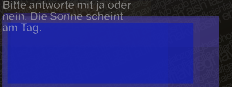 Die Visuelle Bestätigung hilft dabei automatische Spambots und Scripte von den Diensten dieses Forums abzuhalten. Derartige Scripte sind normalerweise nicht in der Lage den untenstehenden Code zu erkennen. Bitte geben Sie also in das untenstehende Feld die Buchstaben und Zahlen ein, die Sie in dem Bild erkennen können oder beantworten Sie die angezeigte Frage.