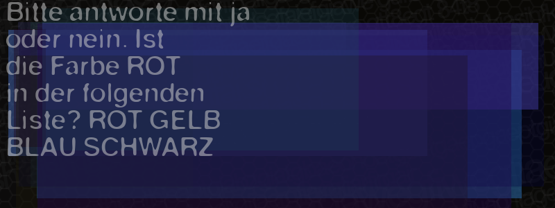 Die Visuelle Bestätigung hilft dabei automatische Spambots und Scripte von den Diensten dieses Forums abzuhalten. Derartige Scripte sind normalerweise nicht in der Lage den untenstehenden Code zu erkennen. Bitte geben Sie also in das untenstehende Feld die Buchstaben und Zahlen ein, die Sie in dem Bild erkennen können oder beantworten Sie die angezeigte Frage.