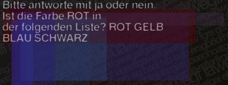 Die Visuelle Bestätigung hilft dabei automatische Spambots und Scripte von den Diensten dieses Forums abzuhalten. Derartige Scripte sind normalerweise nicht in der Lage den untenstehenden Code zu erkennen. Bitte geben Sie also in das untenstehende Feld die Buchstaben und Zahlen ein, die Sie in dem Bild erkennen können oder beantworten Sie die angezeigte Frage.