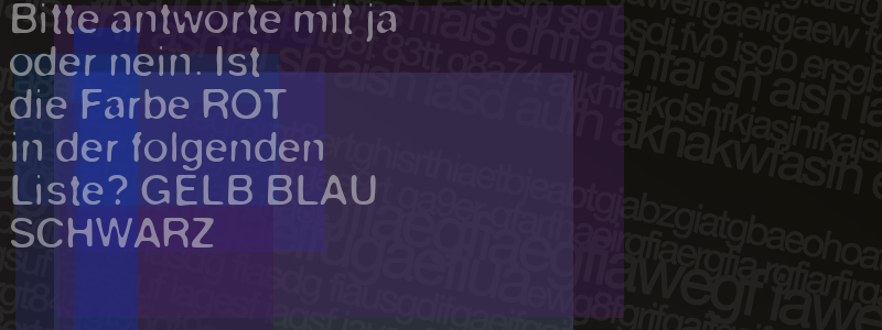 Die Visuelle Bestätigung hilft dabei automatische Spambots und Scripte von den Diensten dieses Forums abzuhalten. Derartige Scripte sind normalerweise nicht in der Lage den untenstehenden Code zu erkennen. Bitte geben Sie also in das untenstehende Feld die Buchstaben und Zahlen ein, die Sie in dem Bild erkennen können oder beantworten Sie die angezeigte Frage.