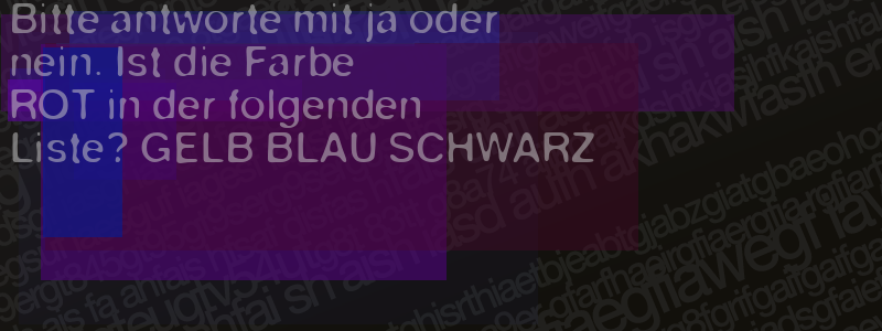 Die Visuelle Bestätigung hilft dabei automatische Spambots und Scripte von den Diensten dieses Forums abzuhalten. Derartige Scripte sind normalerweise nicht in der Lage den untenstehenden Code zu erkennen. Bitte geben Sie also in das untenstehende Feld die Buchstaben und Zahlen ein, die Sie in dem Bild erkennen können oder beantworten Sie die angezeigte Frage.
