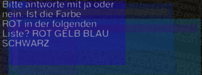 Die Visuelle Bestätigung hilft dabei automatische Spambots und Scripte von den Diensten dieses Forums abzuhalten. Derartige Scripte sind normalerweise nicht in der Lage den untenstehenden Code zu erkennen. Bitte geben Sie also in das untenstehende Feld die Buchstaben und Zahlen ein, die Sie in dem Bild erkennen können oder beantworten Sie die angezeigte Frage.