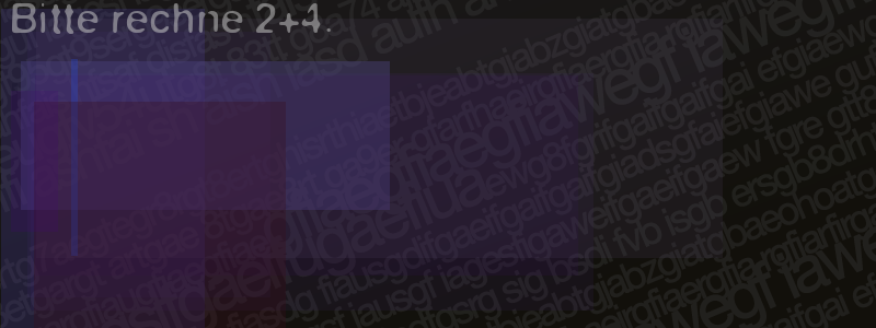 Die Visuelle Bestätigung hilft dabei automatische Spambots und Scripte von den Diensten dieses Forums abzuhalten. Derartige Scripte sind normalerweise nicht in der Lage den untenstehenden Code zu erkennen. Bitte geben Sie also in das untenstehende Feld die Buchstaben und Zahlen ein, die Sie in dem Bild erkennen können oder beantworten Sie die angezeigte Frage.