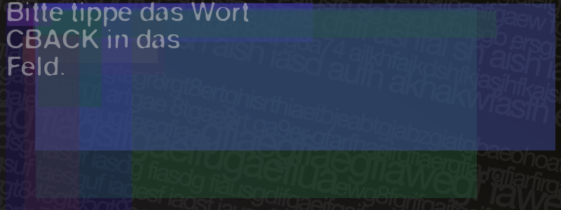 Die Visuelle Bestätigung hilft dabei automatische Spambots und Scripte von den Diensten dieses Forums abzuhalten. Derartige Scripte sind normalerweise nicht in der Lage den untenstehenden Code zu erkennen. Bitte geben Sie also in das untenstehende Feld die Buchstaben und Zahlen ein, die Sie in dem Bild erkennen können oder beantworten Sie die angezeigte Frage.