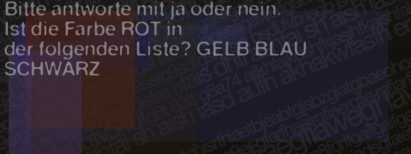 Die Visuelle Bestätigung hilft dabei automatische Spambots und Scripte von den Diensten dieses Forums abzuhalten. Derartige Scripte sind normalerweise nicht in der Lage den untenstehenden Code zu erkennen. Bitte geben Sie also in das untenstehende Feld die Buchstaben und Zahlen ein, die Sie in dem Bild erkennen können oder beantworten Sie die angezeigte Frage.