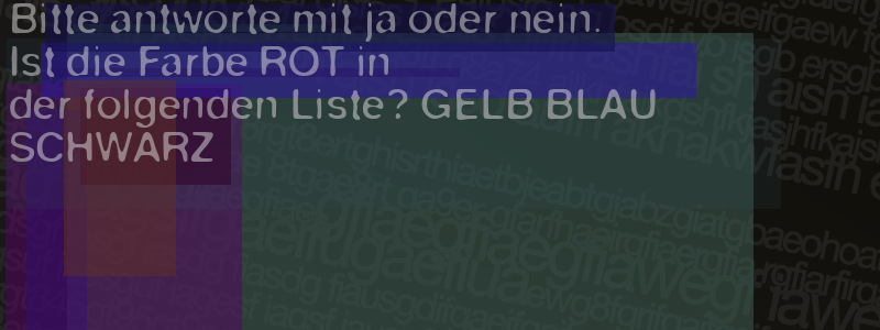 Die Visuelle Bestätigung hilft dabei automatische Spambots und Scripte von den Diensten dieses Forums abzuhalten. Derartige Scripte sind normalerweise nicht in der Lage den untenstehenden Code zu erkennen. Bitte geben Sie also in das untenstehende Feld die Buchstaben und Zahlen ein, die Sie in dem Bild erkennen können oder beantworten Sie die angezeigte Frage.