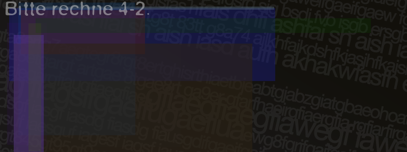 Die Visuelle Bestätigung hilft dabei automatische Spambots und Scripte von den Diensten dieses Forums abzuhalten. Derartige Scripte sind normalerweise nicht in der Lage den untenstehenden Code zu erkennen. Bitte geben Sie also in das untenstehende Feld die Buchstaben und Zahlen ein, die Sie in dem Bild erkennen können oder beantworten Sie die angezeigte Frage.