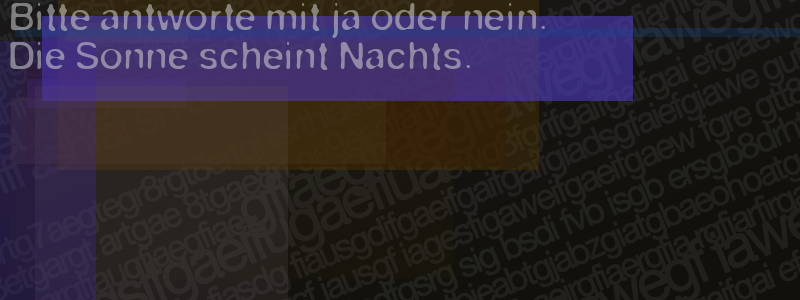 Die Visuelle Bestätigung hilft dabei automatische Spambots und Scripte von den Diensten dieses Forums abzuhalten. Derartige Scripte sind normalerweise nicht in der Lage den untenstehenden Code zu erkennen. Bitte geben Sie also in das untenstehende Feld die Buchstaben und Zahlen ein, die Sie in dem Bild erkennen können oder beantworten Sie die angezeigte Frage.