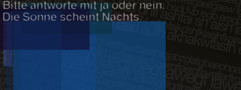Die Visuelle Bestätigung hilft dabei automatische Spambots und Scripte von den Diensten dieses Forums abzuhalten. Derartige Scripte sind normalerweise nicht in der Lage den untenstehenden Code zu erkennen. Bitte geben Sie also in das untenstehende Feld die Buchstaben und Zahlen ein, die Sie in dem Bild erkennen können oder beantworten Sie die angezeigte Frage.