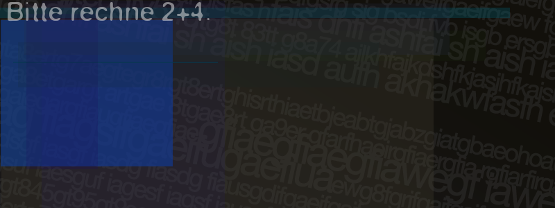 Die Visuelle Bestätigung hilft dabei automatische Spambots und Scripte von den Diensten dieses Forums abzuhalten. Derartige Scripte sind normalerweise nicht in der Lage den untenstehenden Code zu erkennen. Bitte geben Sie also in das untenstehende Feld die Buchstaben und Zahlen ein, die Sie in dem Bild erkennen können oder beantworten Sie die angezeigte Frage.