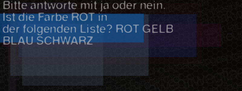 Die Visuelle Bestätigung hilft dabei automatische Spambots und Scripte von den Diensten dieses Forums abzuhalten. Derartige Scripte sind normalerweise nicht in der Lage den untenstehenden Code zu erkennen. Bitte geben Sie also in das untenstehende Feld die Buchstaben und Zahlen ein, die Sie in dem Bild erkennen können oder beantworten Sie die angezeigte Frage.