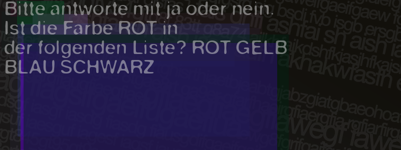 Die Visuelle Bestätigung hilft dabei automatische Spambots und Scripte von den Diensten dieses Forums abzuhalten. Derartige Scripte sind normalerweise nicht in der Lage den untenstehenden Code zu erkennen. Bitte geben Sie also in das untenstehende Feld die Buchstaben und Zahlen ein, die Sie in dem Bild erkennen können oder beantworten Sie die angezeigte Frage.