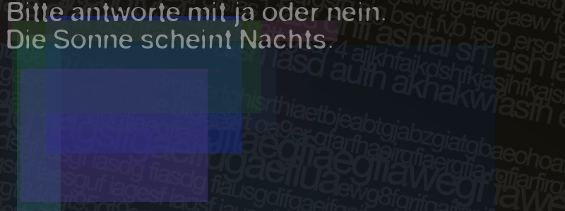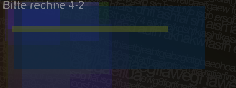 Die Visuelle Bestätigung hilft dabei automatische Spambots und Scripte von den Diensten dieses Forums abzuhalten. Derartige Scripte sind normalerweise nicht in der Lage den untenstehenden Code zu erkennen. Bitte geben Sie also in das untenstehende Feld die Buchstaben und Zahlen ein, die Sie in dem Bild erkennen können oder beantworten Sie die angezeigte Frage.