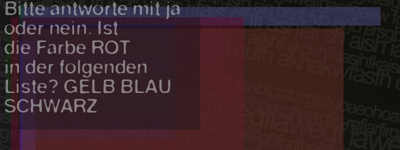 Die Visuelle Bestätigung hilft dabei automatische Spambots und Scripte von den Diensten dieses Forums abzuhalten. Derartige Scripte sind normalerweise nicht in der Lage den untenstehenden Code zu erkennen. Bitte geben Sie also in das untenstehende Feld die Buchstaben und Zahlen ein, die Sie in dem Bild erkennen können oder beantworten Sie die angezeigte Frage.