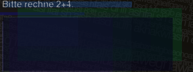 Die Visuelle Bestätigung hilft dabei automatische Spambots und Scripte von den Diensten dieses Forums abzuhalten. Derartige Scripte sind normalerweise nicht in der Lage den untenstehenden Code zu erkennen. Bitte geben Sie also in das untenstehende Feld die Buchstaben und Zahlen ein, die Sie in dem Bild erkennen können oder beantworten Sie die angezeigte Frage.