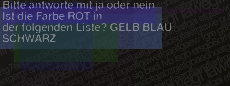 Die Visuelle Bestätigung hilft dabei automatische Spambots und Scripte von den Diensten dieses Forums abzuhalten. Derartige Scripte sind normalerweise nicht in der Lage den untenstehenden Code zu erkennen. Bitte geben Sie also in das untenstehende Feld die Buchstaben und Zahlen ein, die Sie in dem Bild erkennen können oder beantworten Sie die angezeigte Frage.