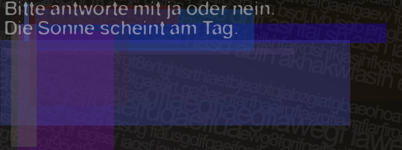 Die Visuelle Bestätigung hilft dabei automatische Spambots und Scripte von den Diensten dieses Forums abzuhalten. Derartige Scripte sind normalerweise nicht in der Lage den untenstehenden Code zu erkennen. Bitte geben Sie also in das untenstehende Feld die Buchstaben und Zahlen ein, die Sie in dem Bild erkennen können oder beantworten Sie die angezeigte Frage.