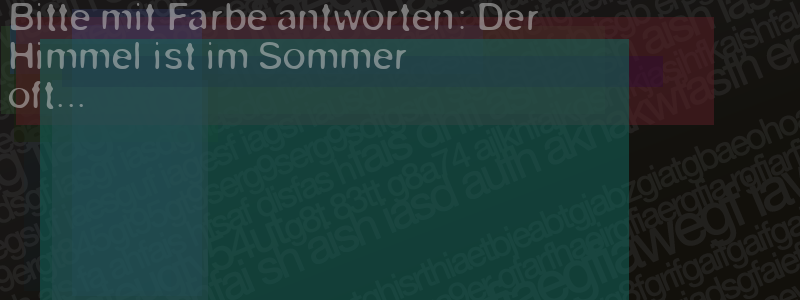 Die Visuelle Bestätigung hilft dabei automatische Spambots und Scripte von den Diensten dieses Forums abzuhalten. Derartige Scripte sind normalerweise nicht in der Lage den untenstehenden Code zu erkennen. Bitte geben Sie also in das untenstehende Feld die Buchstaben und Zahlen ein, die Sie in dem Bild erkennen können oder beantworten Sie die angezeigte Frage.