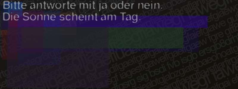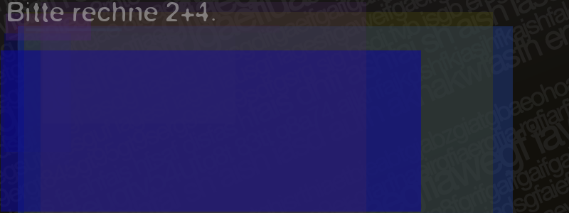 Die Visuelle Bestätigung hilft dabei automatische Spambots und Scripte von den Diensten dieses Forums abzuhalten. Derartige Scripte sind normalerweise nicht in der Lage den untenstehenden Code zu erkennen. Bitte geben Sie also in das untenstehende Feld die Buchstaben und Zahlen ein, die Sie in dem Bild erkennen können oder beantworten Sie die angezeigte Frage.