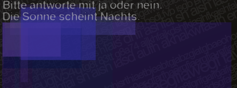 Die Visuelle Bestätigung hilft dabei automatische Spambots und Scripte von den Diensten dieses Forums abzuhalten. Derartige Scripte sind normalerweise nicht in der Lage den untenstehenden Code zu erkennen. Bitte geben Sie also in das untenstehende Feld die Buchstaben und Zahlen ein, die Sie in dem Bild erkennen können oder beantworten Sie die angezeigte Frage.