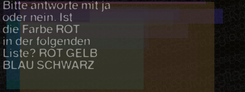 Die Visuelle Bestätigung hilft dabei automatische Spambots und Scripte von den Diensten dieses Forums abzuhalten. Derartige Scripte sind normalerweise nicht in der Lage den untenstehenden Code zu erkennen. Bitte geben Sie also in das untenstehende Feld die Buchstaben und Zahlen ein, die Sie in dem Bild erkennen können oder beantworten Sie die angezeigte Frage.