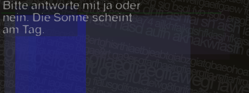 Die Visuelle Bestätigung hilft dabei automatische Spambots und Scripte von den Diensten dieses Forums abzuhalten. Derartige Scripte sind normalerweise nicht in der Lage den untenstehenden Code zu erkennen. Bitte geben Sie also in das untenstehende Feld die Buchstaben und Zahlen ein, die Sie in dem Bild erkennen können oder beantworten Sie die angezeigte Frage.