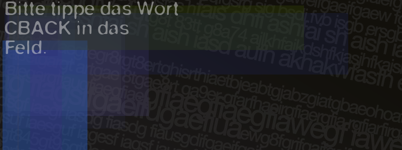 Die Visuelle Bestätigung hilft dabei automatische Spambots und Scripte von den Diensten dieses Forums abzuhalten. Derartige Scripte sind normalerweise nicht in der Lage den untenstehenden Code zu erkennen. Bitte geben Sie also in das untenstehende Feld die Buchstaben und Zahlen ein, die Sie in dem Bild erkennen können oder beantworten Sie die angezeigte Frage.