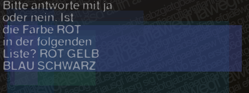Die Visuelle Bestätigung hilft dabei automatische Spambots und Scripte von den Diensten dieses Forums abzuhalten. Derartige Scripte sind normalerweise nicht in der Lage den untenstehenden Code zu erkennen. Bitte geben Sie also in das untenstehende Feld die Buchstaben und Zahlen ein, die Sie in dem Bild erkennen können oder beantworten Sie die angezeigte Frage.
