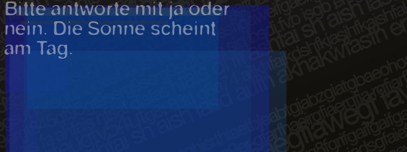 Die Visuelle Bestätigung hilft dabei automatische Spambots und Scripte von den Diensten dieses Forums abzuhalten. Derartige Scripte sind normalerweise nicht in der Lage den untenstehenden Code zu erkennen. Bitte geben Sie also in das untenstehende Feld die Buchstaben und Zahlen ein, die Sie in dem Bild erkennen können oder beantworten Sie die angezeigte Frage.