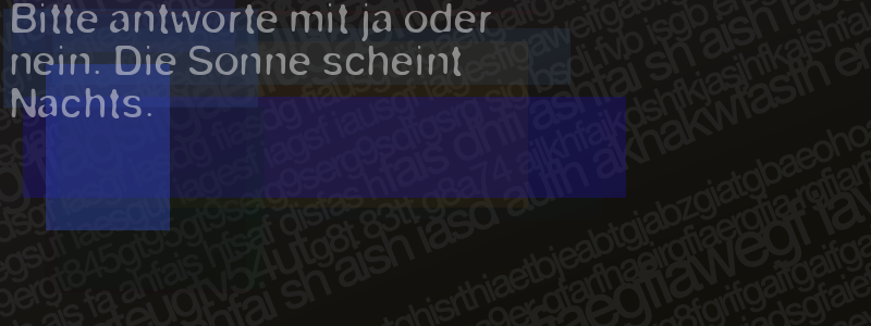 Die Visuelle Bestätigung hilft dabei automatische Spambots und Scripte von den Diensten dieses Forums abzuhalten. Derartige Scripte sind normalerweise nicht in der Lage den untenstehenden Code zu erkennen. Bitte geben Sie also in das untenstehende Feld die Buchstaben und Zahlen ein, die Sie in dem Bild erkennen können oder beantworten Sie die angezeigte Frage.