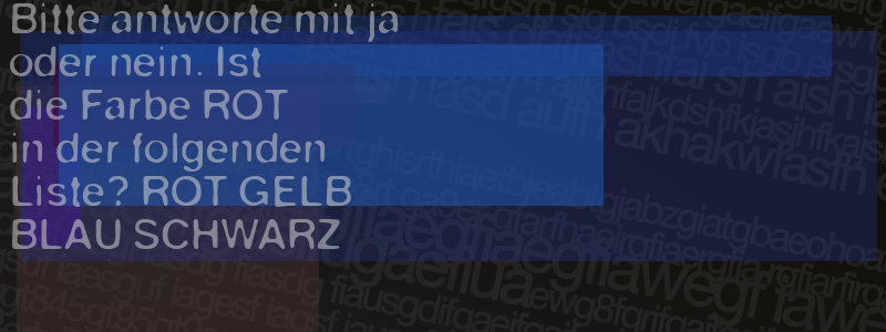 Die Visuelle Bestätigung hilft dabei automatische Spambots und Scripte von den Diensten dieses Forums abzuhalten. Derartige Scripte sind normalerweise nicht in der Lage den untenstehenden Code zu erkennen. Bitte geben Sie also in das untenstehende Feld die Buchstaben und Zahlen ein, die Sie in dem Bild erkennen können oder beantworten Sie die angezeigte Frage.