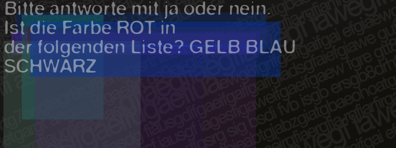 Die Visuelle Bestätigung hilft dabei automatische Spambots und Scripte von den Diensten dieses Forums abzuhalten. Derartige Scripte sind normalerweise nicht in der Lage den untenstehenden Code zu erkennen. Bitte geben Sie also in das untenstehende Feld die Buchstaben und Zahlen ein, die Sie in dem Bild erkennen können oder beantworten Sie die angezeigte Frage.